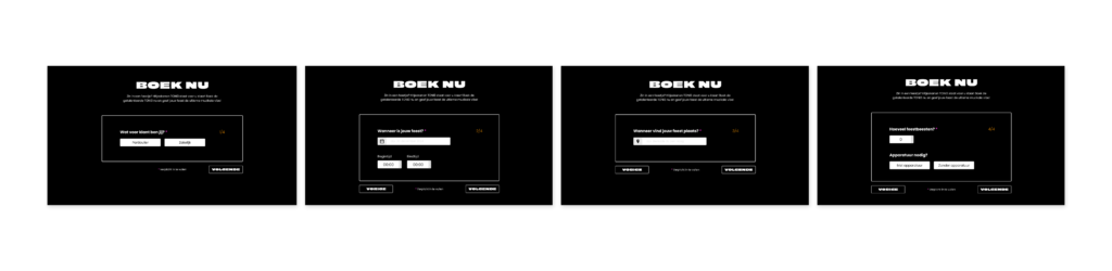 Om het boeken van TONI3 zo makkelijk mogelijk te maken voor potentiële klanten, hebben we gebruik gemaakt van een stapsgewijs boekingsformulier. Elke stap heeft één of twee vragen om het boeken zo snel en gemakkelijk mogelijk voor de klant te maken.